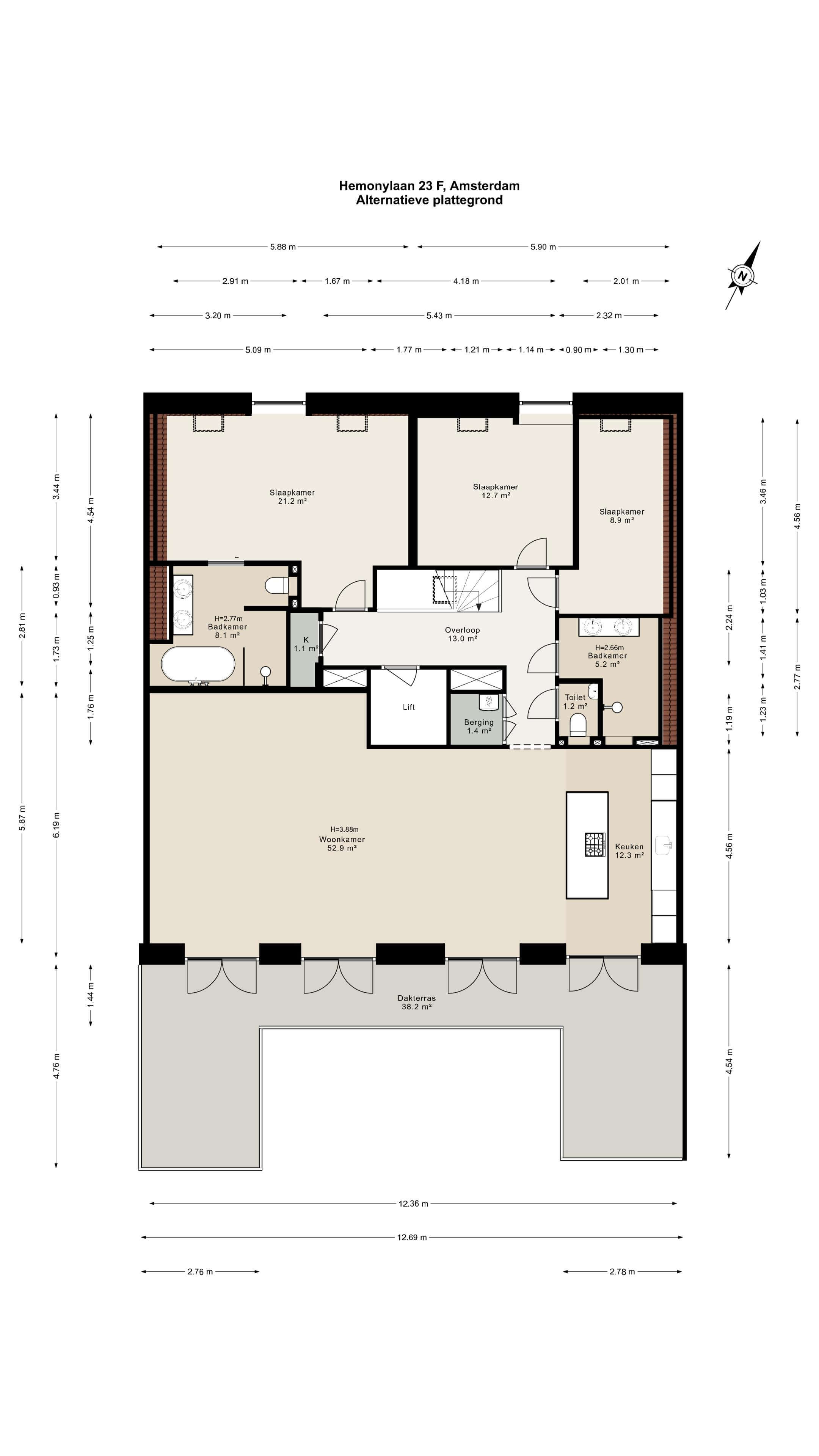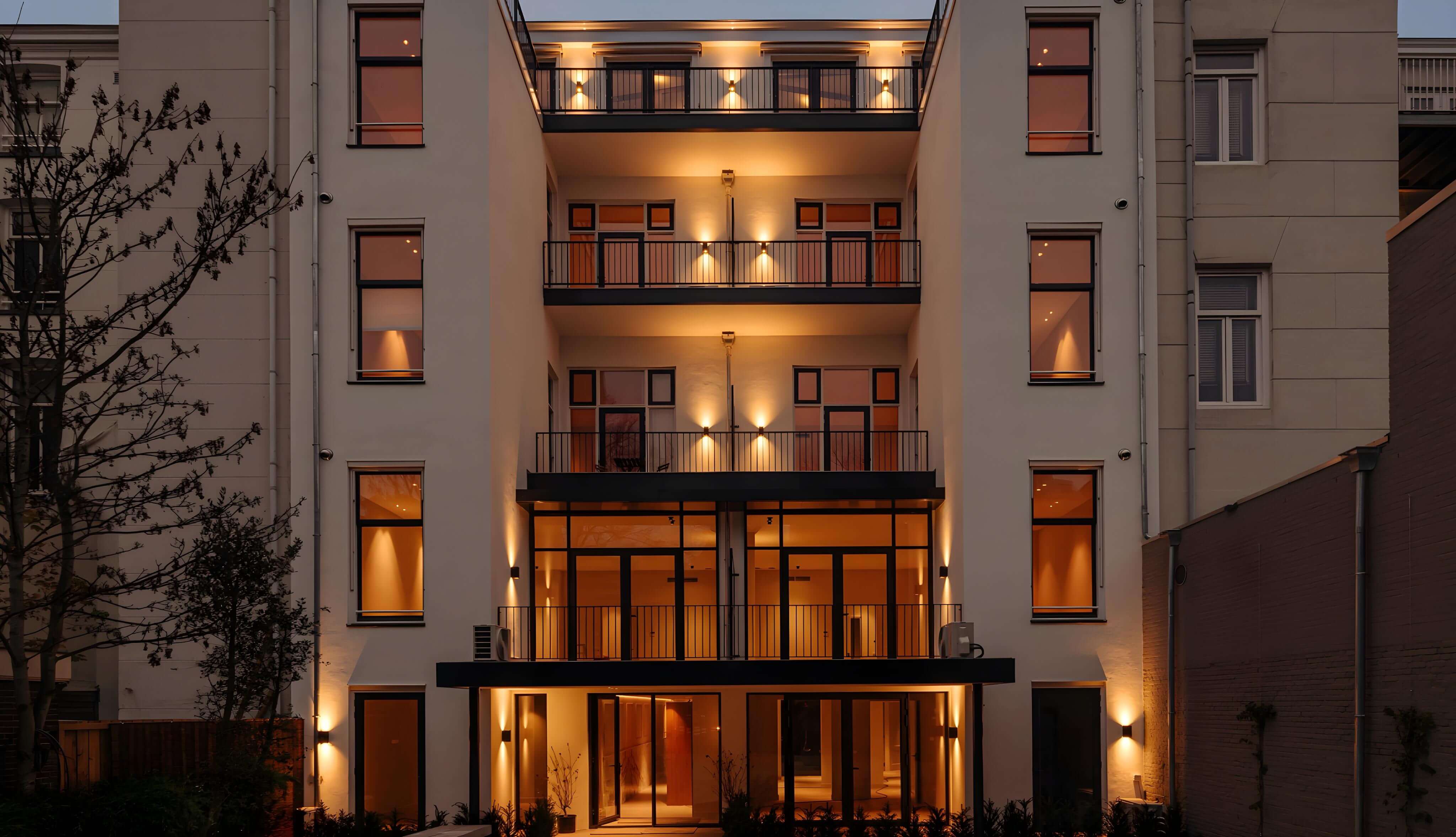 Aan de achterzijde biedt de moderne uitbouw met een nieuwe hoofdentree en ruime balkons een hedendaags contrast. De entree, gelegen aan de Hemonylaan, is voorzien van een stijlvolle luifel met vegetatiedak die zowel esthetisch als functioneel is. Het pand heeft bovendien een centraal trappenhuis met lift, wat zorgt voor efficiënte indelingen en veel lichtinval in alle appartementen.