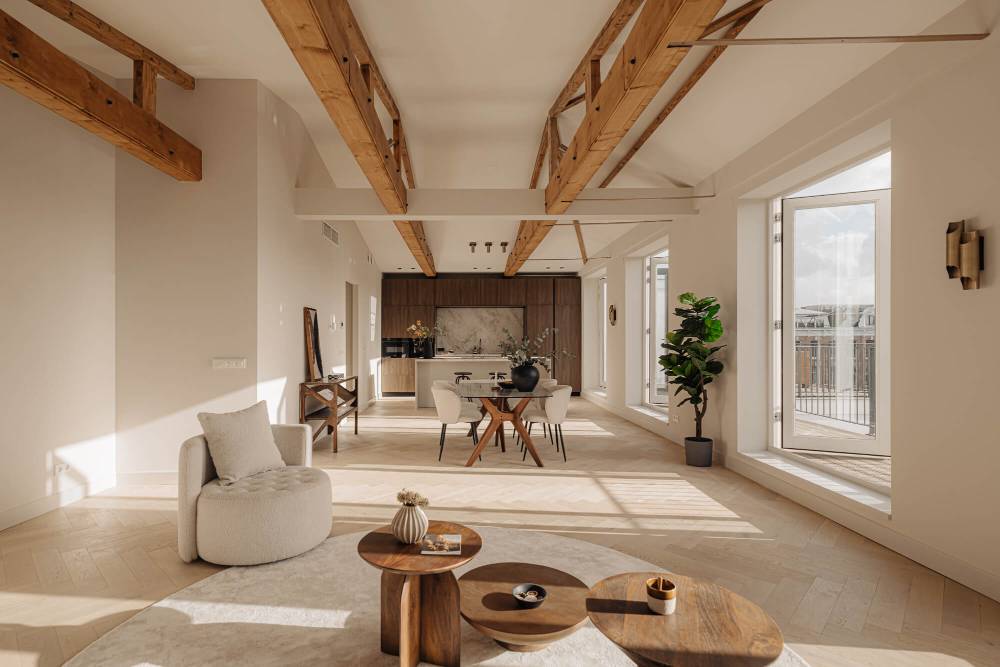 Elk van de zeven appartementen is uniek in indeling, met een woonoppervlak variërend van 80 m² tot 182 m². De woonkamers zijn gericht op het zuiden, waardoor ze baden in natuurlijk licht, terwijl de slaapkamers aan de rustige noordzijde liggen. Alle appartementen beschikken over vloerverwarming, hybride warmtepompen en balansventilatie met warmteterugwinning.